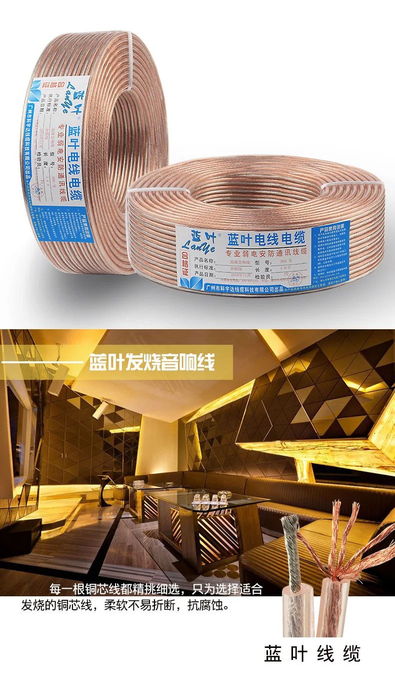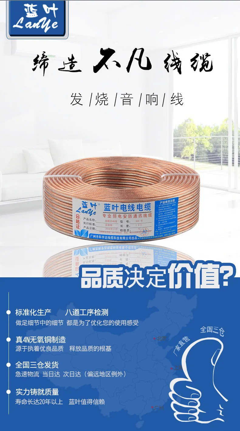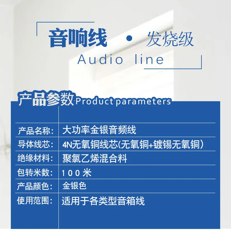 Cable de audio 2 * 1,0 cuadrado 400 núcleos Cable de audio de altavoz de calidad de cobre sin oxígeno Cable de altavoz de fiebre