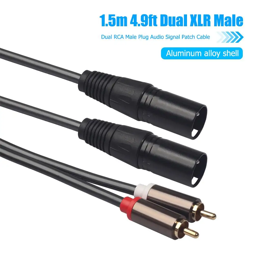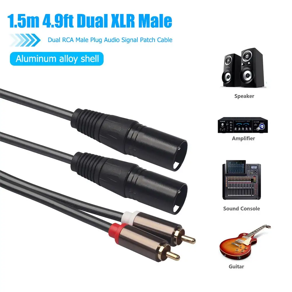 Comprar Cable de Audio 2RCA macho a 2 xlr macho, carcasa de aleación de aluminio, cabezal Canon de aleación de Zinc para amplificador, mezclador, sistema de cine en casa