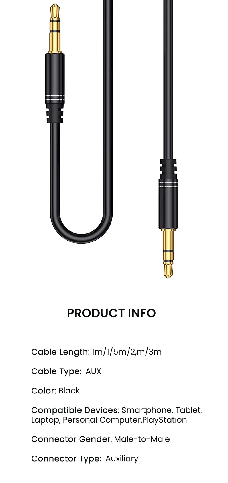 • Adaptador de cable audio de 3.5mm :Este adaptador de cable audio de 3.5mm es perfecto para conectar tu dispositivo a cualquier sistema de sonido, ideal para usar en el coche o con auriculares.