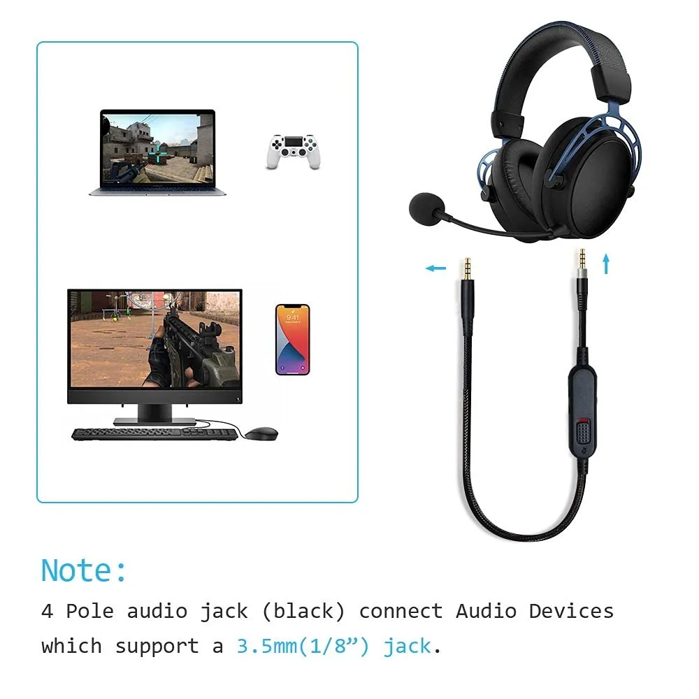 This cable replaces the detachable cable that comes with your HyperX Cloud Mix and HyperX Cloud Alpha Gaming headsets.