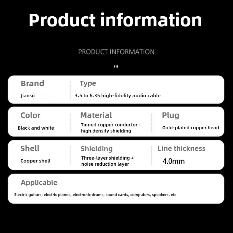 Cable de audio macho de 1,3,5 mm a macho de 6,35 mm