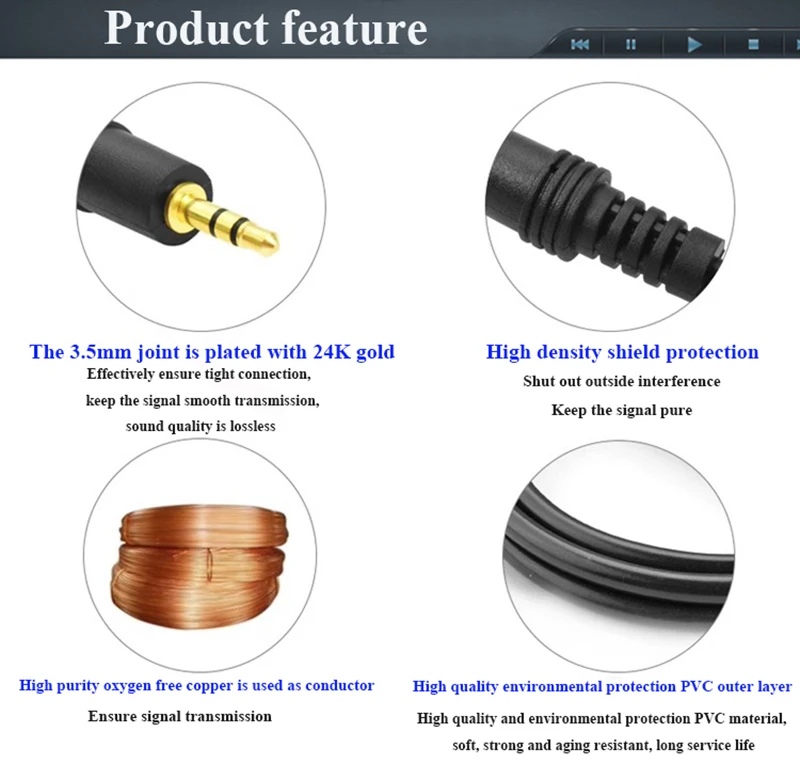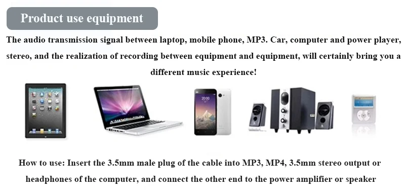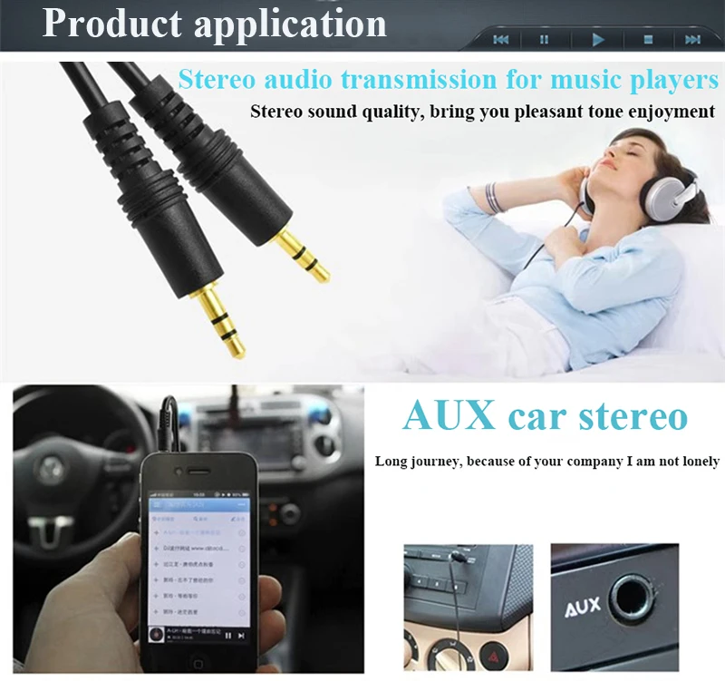 Uso del producto: Conexión de equipo de audio del coche, este cable de conexión AUX es adecuado para teléfonos móviles, ordenadores, DVD, TV, reproductor de CD y otros equipos y reproductor de energía, conexión de altavoz y transmisión de sus señales de audio