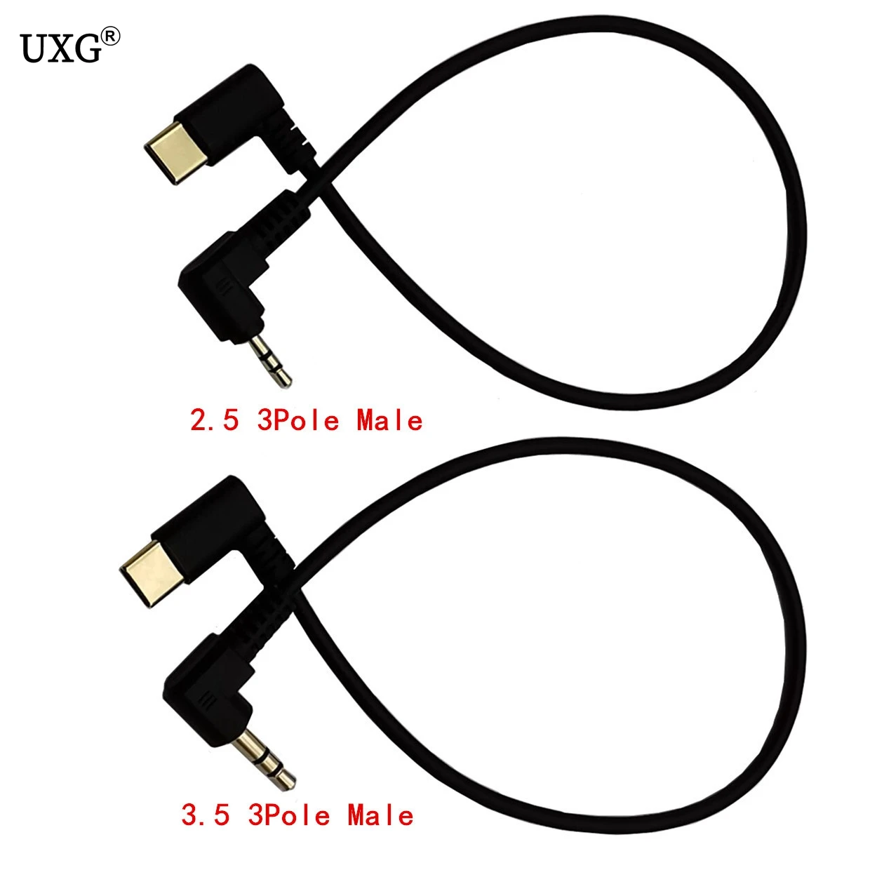 Comprar Cable de Audio a USB C de 3,5mm y 2,5mm, ángulo de 90 grados, USB tipo C a 2,5, 3,5mm, codo macho, Cable auxiliar para auriculares, 30cm, 1 pie