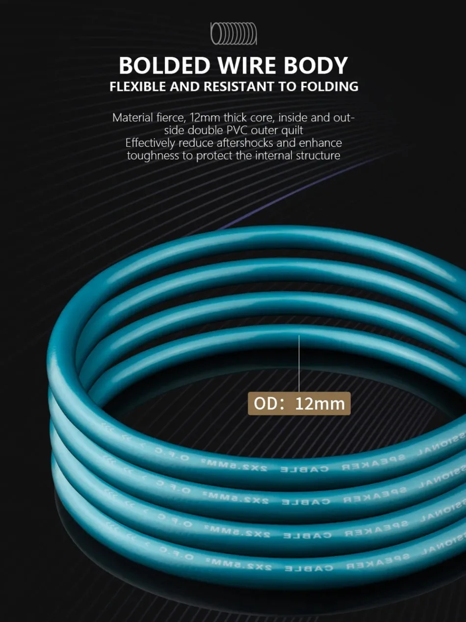 EFECTOS DE SONIDO HIFI PRESENT DE CONDUCTOR OSELECTADOS DE ALTA PURIDADEstá hecho de dos conductores de cobre sin Oxvgen 5N con alambres nervios.Cada capa de PVC aislante de alta calidad con salida de núcleo, pureza del conductor, alta estabilidad de transmisión de señal.Se mejora la velocidad de transmisión y se purifica la calidad del sonido.