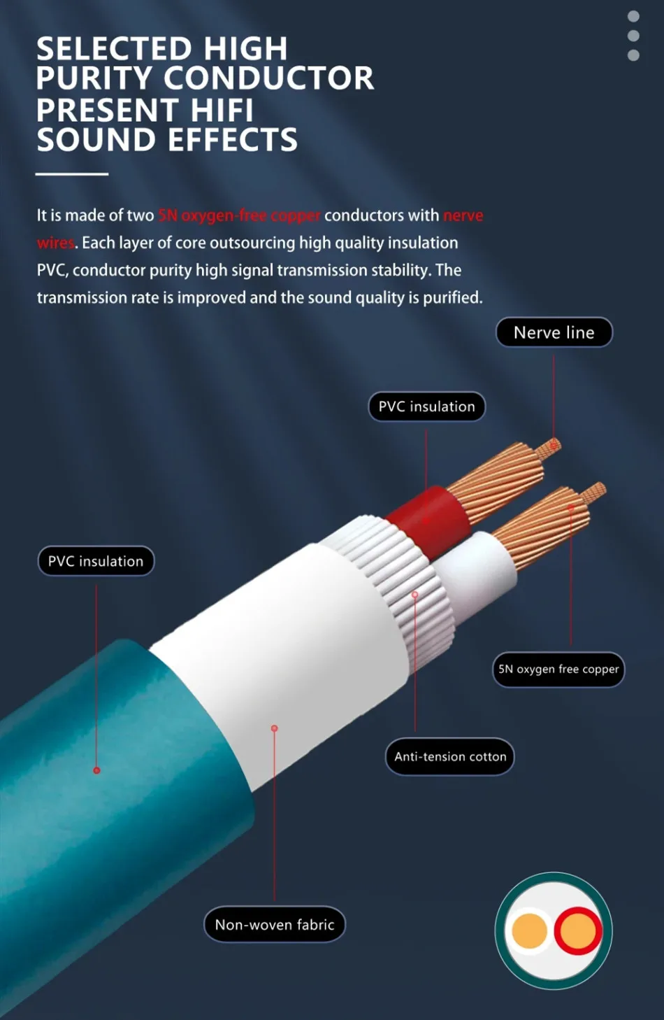 Calidad del SONIDO DE NFIDELIDAD UNDISTORTIOEl uso de un cuerpo dominante de cobre libre de oxígeno de alta pureza, con cable nervioso para escolta de señal de fuente de sonido, transmisión más rápida y calidad de sonido más estable es mejor, de modo que la pantalla del sonido debido al timbre.