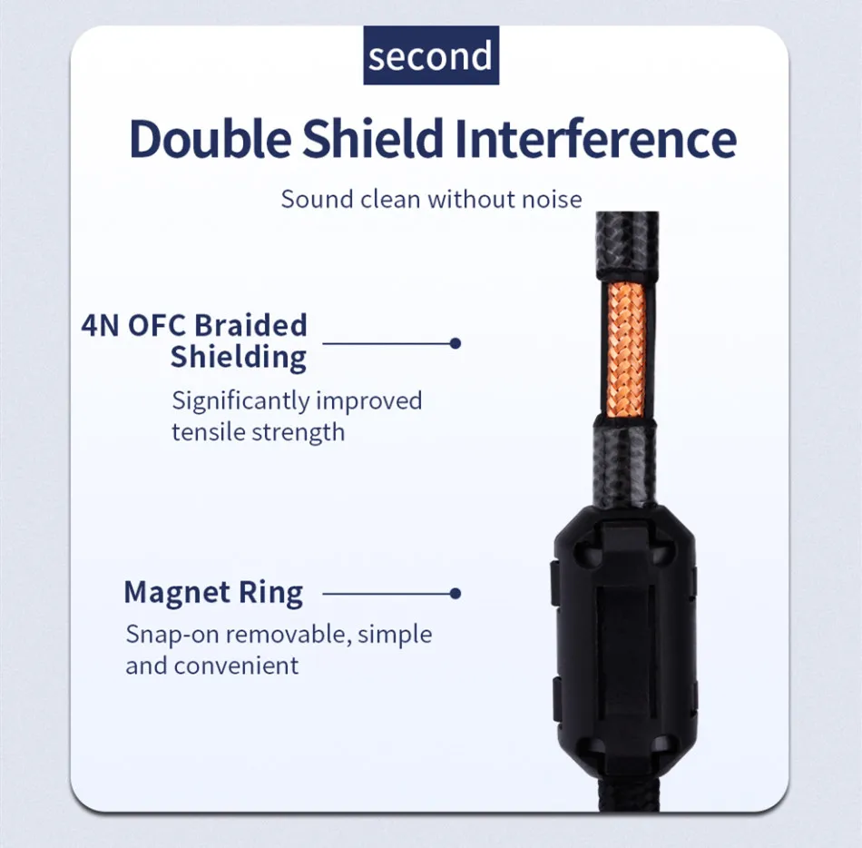 5. Blindaje: doble blindaje de cobre y lámina de aluminio