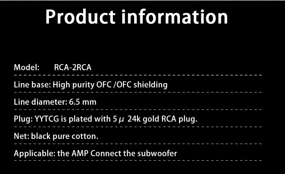 7. Enchufe: conector RCA hembra, conector RCA macho chapado en oro