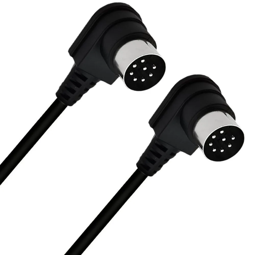 Doble curvatura 90° Cable de conexión de equipo multimedia de audio y vídeo con altavoz macho DIN grande blindado de 8 núcleos,