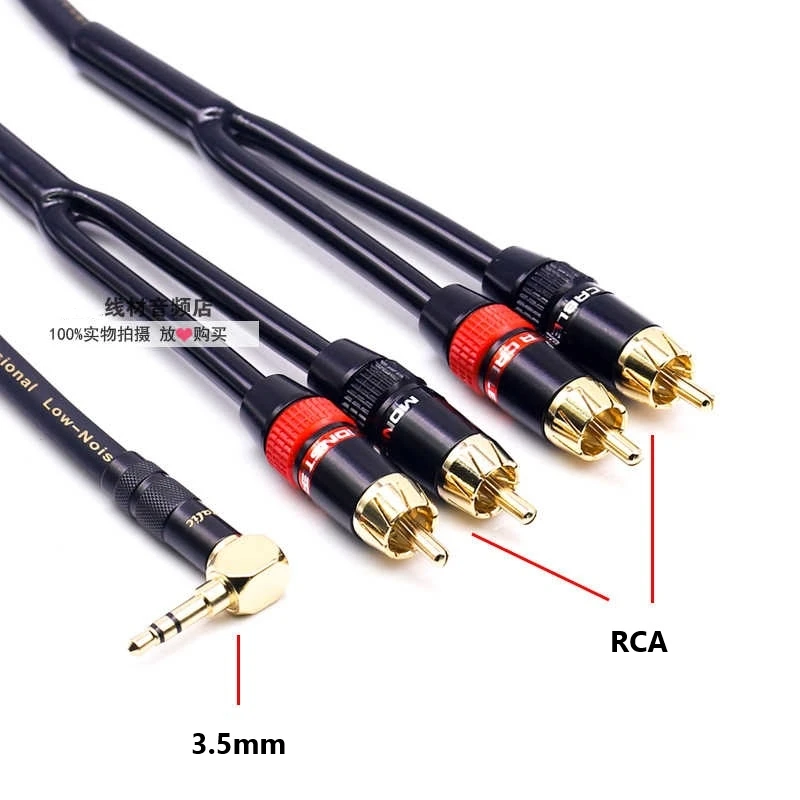 Cable de Audio amplificador de 3,5 mm a 4 RCA 1/4 para computadora Dos juegos de altavoces en ángulo recto