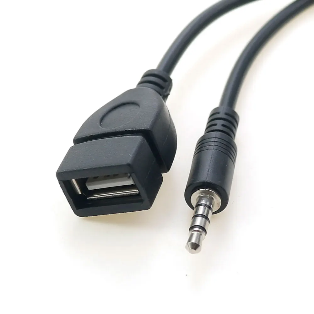 Conector Jack macho de 4 polos de 3,5 mm a USB 2,0 hembra, cable adaptador de audio OTG, convertidor de reproductor MP3 para coche