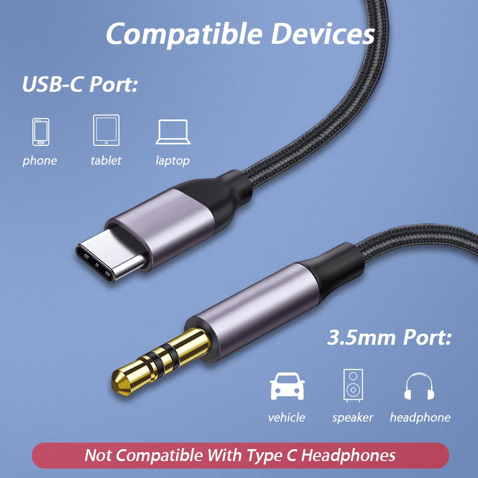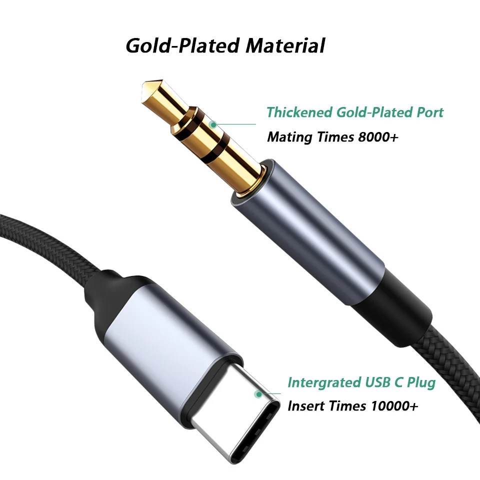 Comprar Cable de Audio auxiliar HIFI macho a macho tipo C a 3,5 Mm, auriculares Bluetooth para coche Xiaomi 9, Usb C a Jack de 3,5 Mm para Huawei