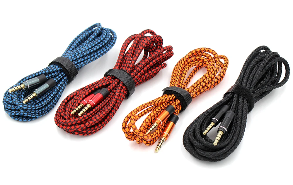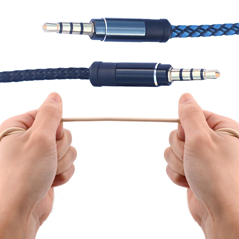 Comprar Cable de Audio auxiliar Jack de 3,5mm, 4 polos con auriculares trenzados de nailon para altavoz, extensión de Cable auxiliar MP3 para coche, 1,5 m, 3m
