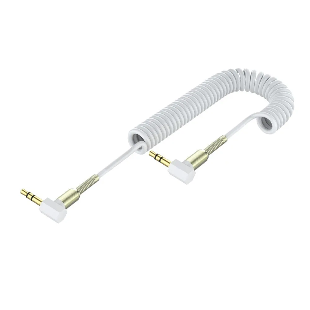 Cable de audio auxiliar montado en el coche, codo de resorte, auriculares macho a macho de doble cabeza de 3,5mm, cable de conexión de altavoz de teléfono móvil