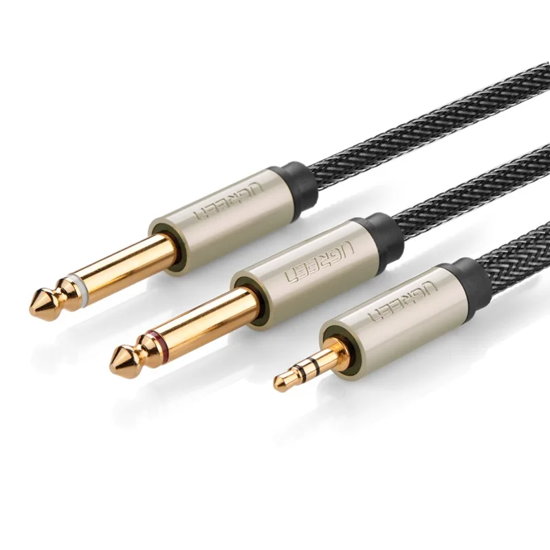 Cable Ugreen AV126 chapado en oro de 3,5mm a 2x6,35mm Cable de Audio Mono Y Cable divisor para iPhone, iPod, tarjetas de sonido de ordenador, reproductor de CD