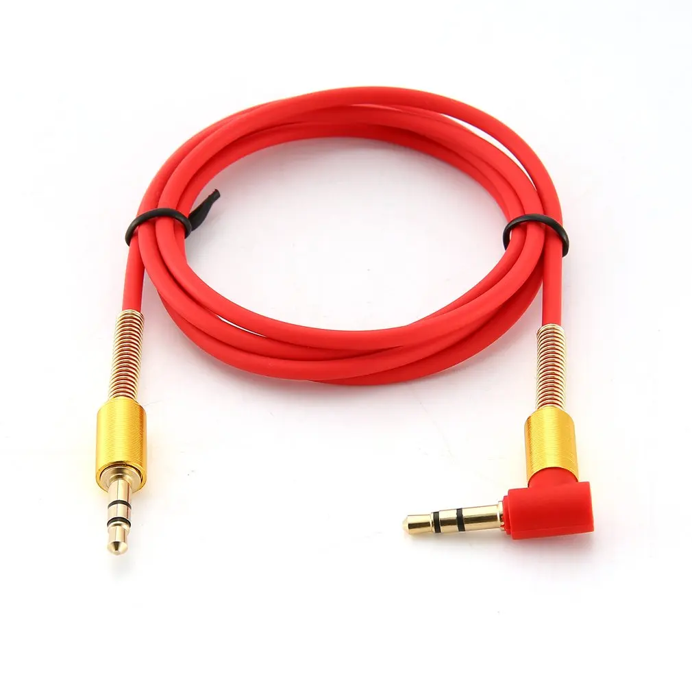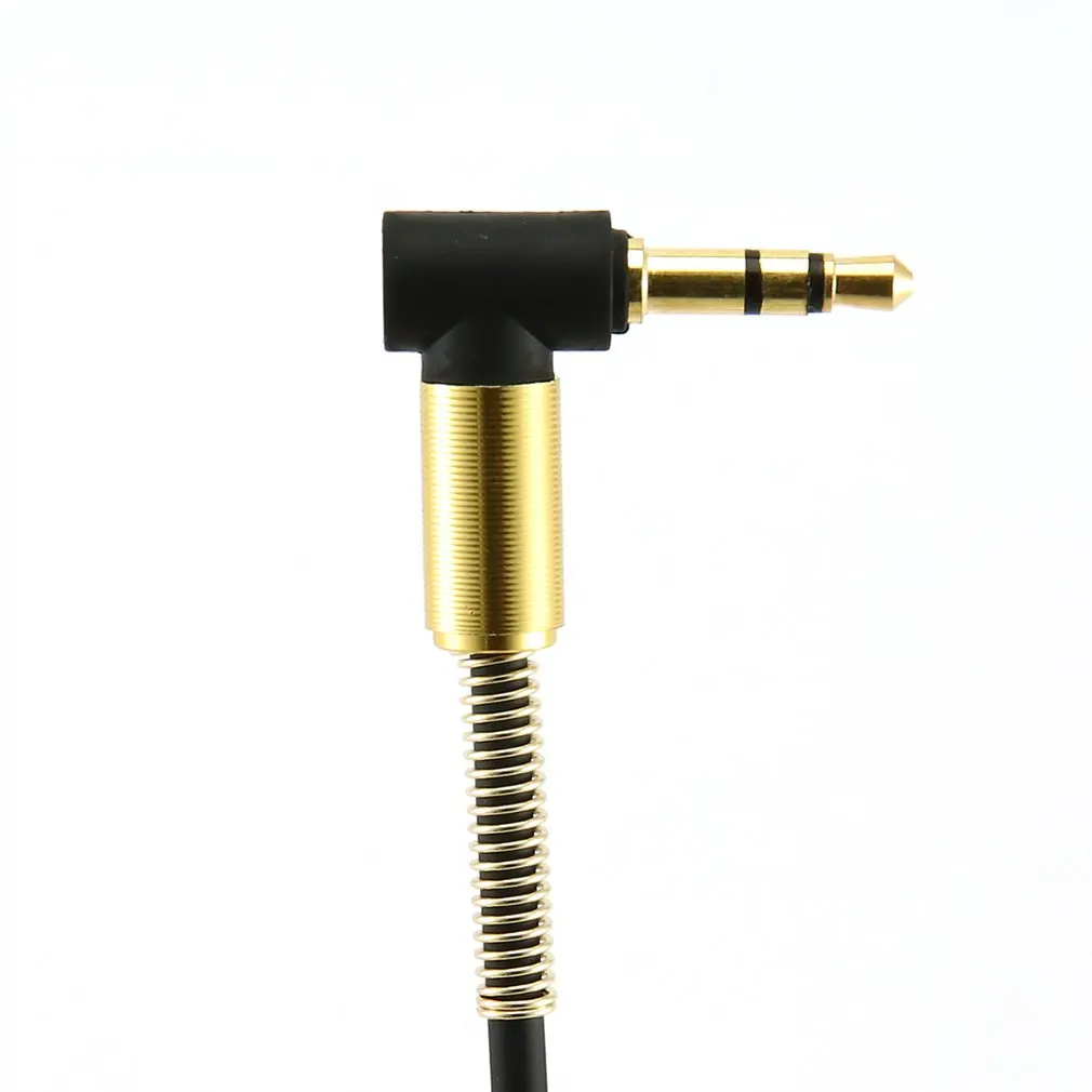 Jack de 3,5mm estéreo 1m Cable de Audio macho a macho Cable auxiliar derecho de 90 grados Cable con cubierta protectora de resorte