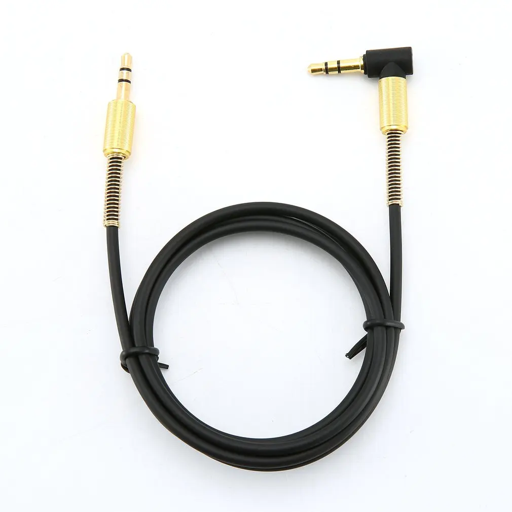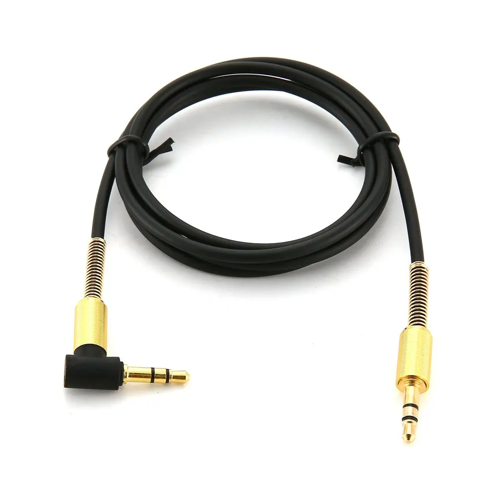Jack de 3,5mm estéreo 1m Cable de Audio macho a macho Cable auxiliar derecho de 90 grados Cable con cubierta protectora de resorte