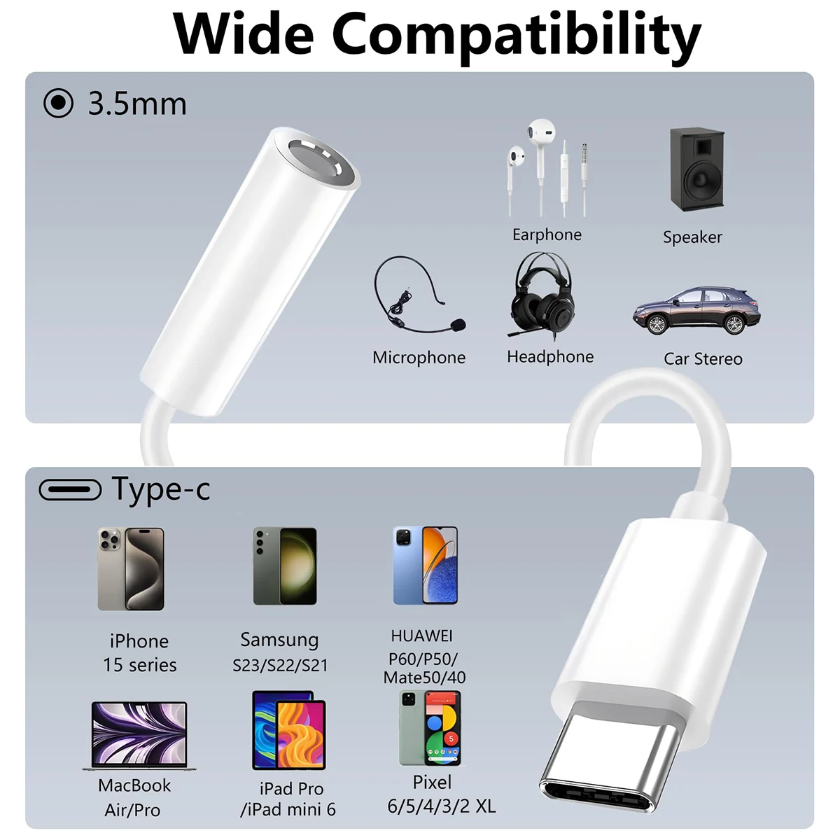 Comprar Cable de audio con conector adaptador auxiliar tipo C a 3,5 mm para Huawei Xiaomi Redmi POCO Sumsang Cable auxiliar para iPhone 16 15 Serives