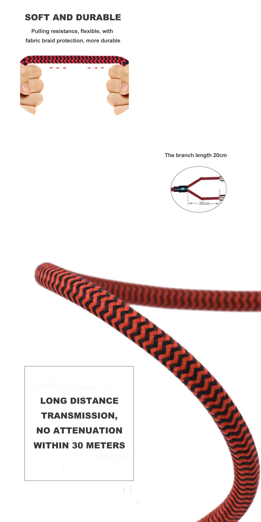 El cable es suave, flexible, con trenza de tela, más duradero.