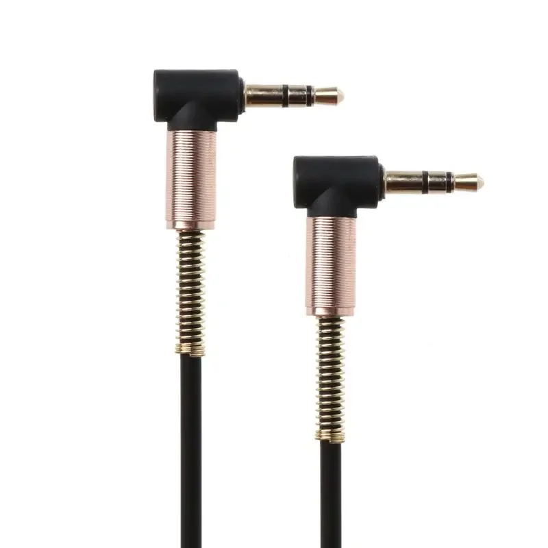 Comprar Cable de Audio Dual para coche, accesorio de 90 grados, nailon, 3,5mm a 3,5mm, conector macho, Aux, para Samsung, Xiaomi, MP3, altavoz, teléfono y tabletas, 24cm