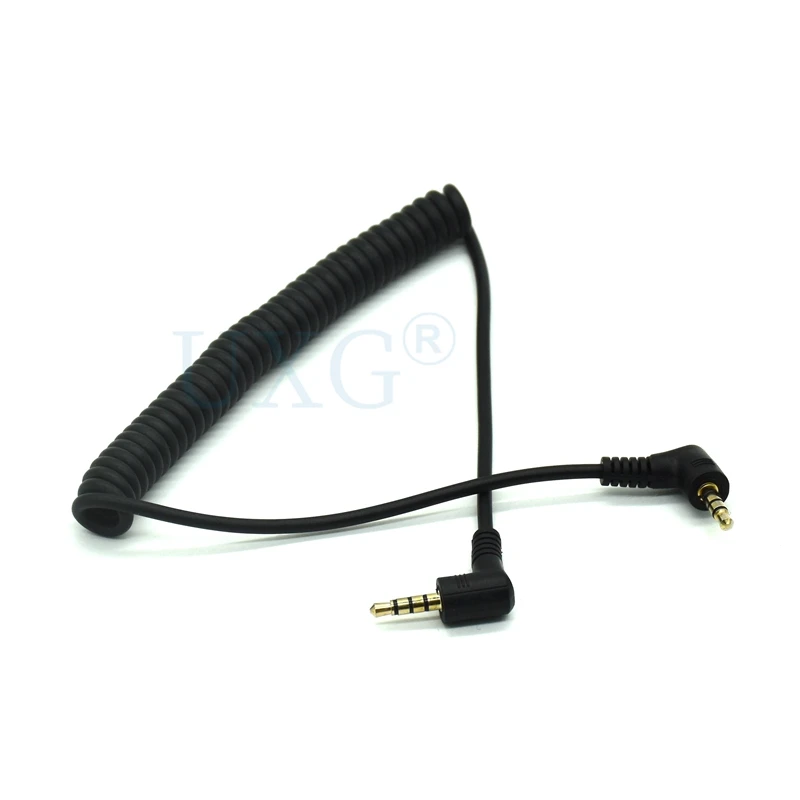 Conector de Cable de Audio en espiral Cable auxiliar M/M de 90 grados y 3,5 mm en ángulo recto para reproductor MP4 de línea de coche móvil Cable auxiliar de 3,5 mmEste cable de audio en espiral de 3,5 mm macho a macho puede ofrecerle una excelente solución para disfrutar de la música desde su teléfono móvil, MP3/MP4, etc. al sistema auxiliar o altavoz del automóvil.La longitud exacta depende de qué tan recto estirar el cable.Si tiene requisitos precisos de longitud, no compre cable en espiral.Como todos los cables enrollados, la longitud no puede ser precisa.Por favor revise nuestra imagen dos veces, no lo malinterpretes.4 polos de 3,5 mm. Tenga en cuenta que esto no admite micrófono.