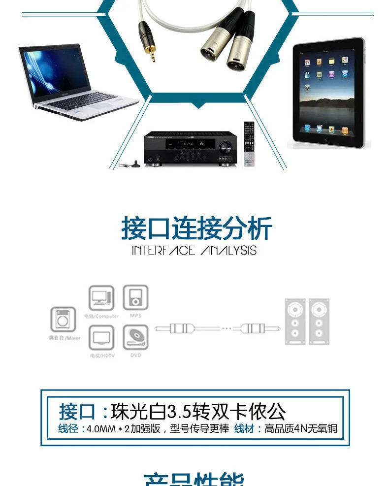Nombre: Cable de audio XLR doble blanco perla de 3,5 a doble
