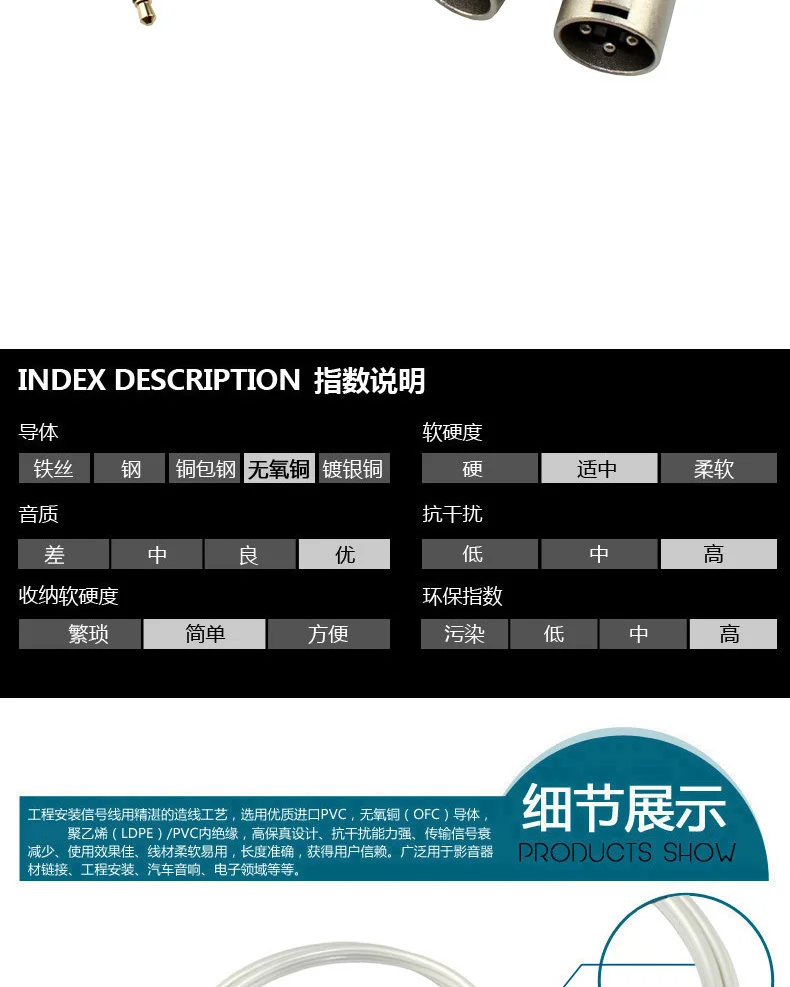 Conexión: 3,5 enchufe macho XLR doble