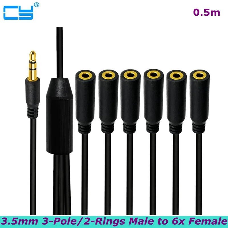 Comprar Cable de Audio estéreo de 3,5mm (1/8 "), de 3 polos TRRS/2 anillos macho a 6x hembra de 3,5mm, TRRS de 3 polos/2 anillos, chapado en oro, 0,5 m