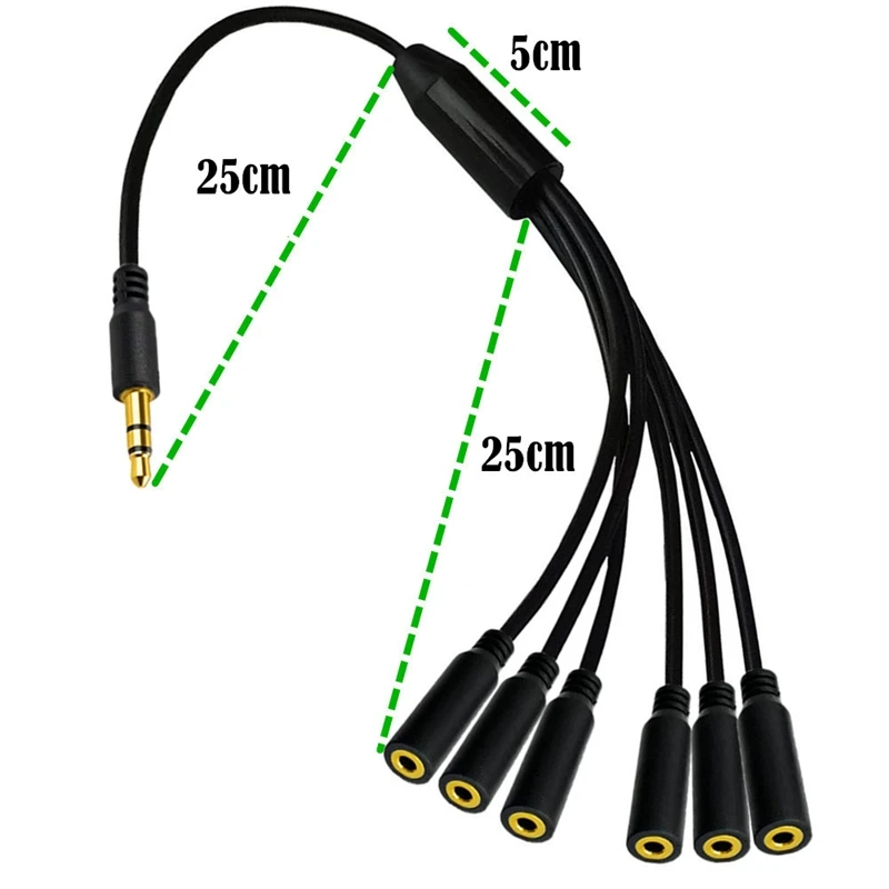 Auriculares DC3.5MM con un cable de audio macho y seis hembra, adecuados para teléfonos inteligentes, reproductores de MP3, reproductores de CD, computadoras portátiles, auriculares de tableta, altavoces y otros productos