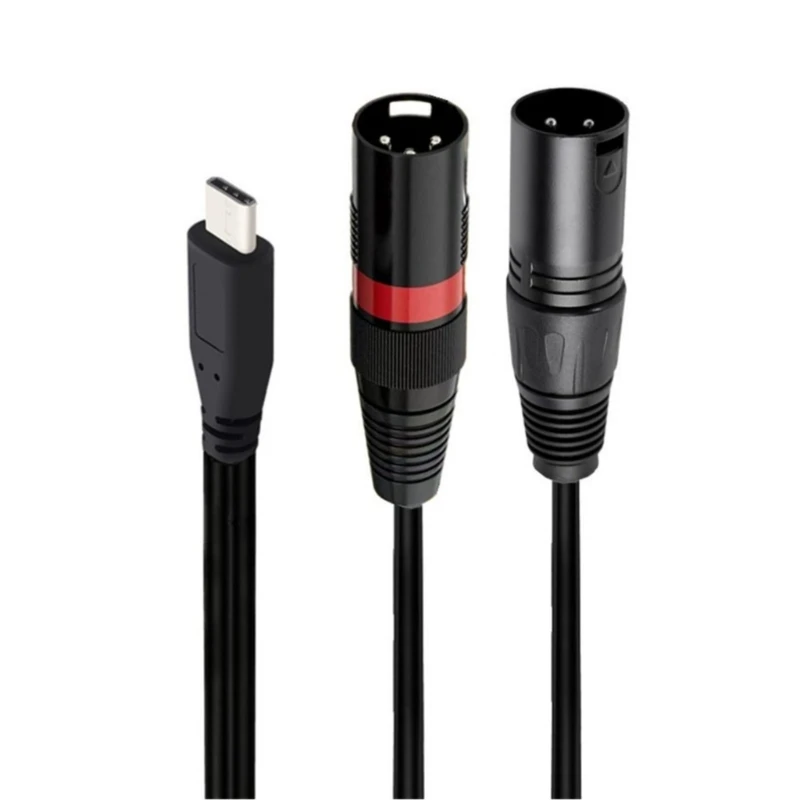 Cable de Audio estéreo amplificador USB tipo C macho a 2 XLR macho para teléfonos inteligentes y portátiles