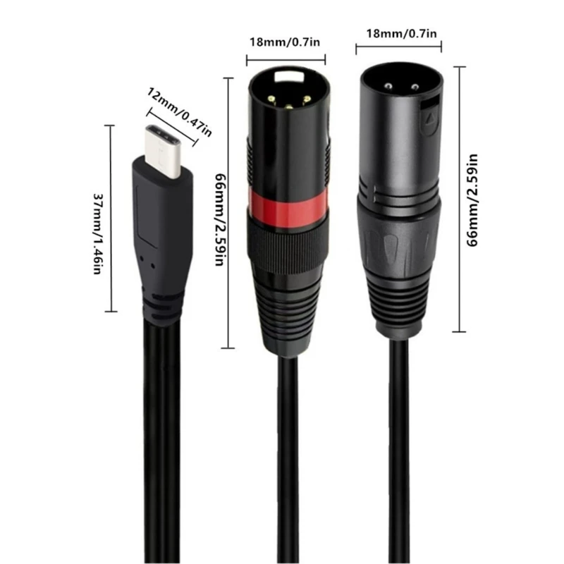 Cable de Audio estéreo amplificador USB tipo C macho a 2 XLR macho para teléfonos inteligentes y portátiles
