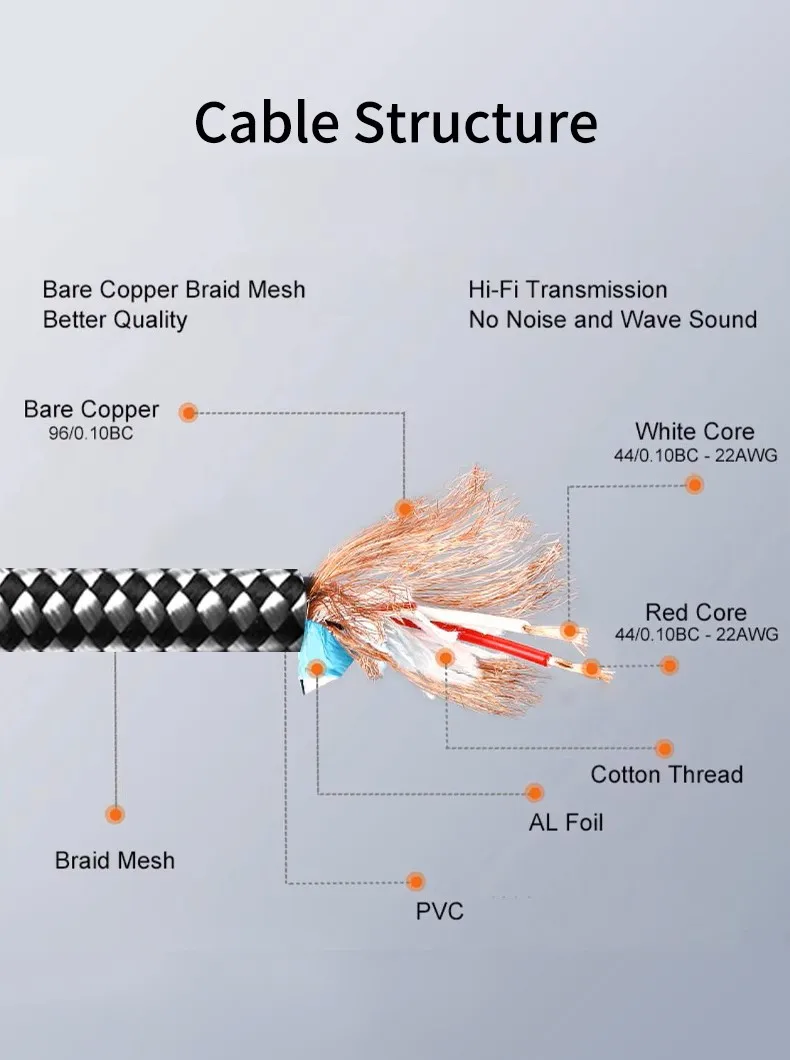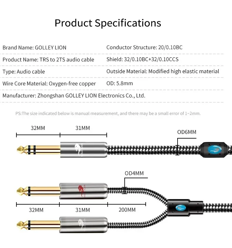Cable de Audio estéreo para audiófilo, conector TRS de 1/4 pulgadas a conector TS de 2x1/4 pulgadas para consola mezcladora de órganos Eletronic, Cable OFC de 1M, 2M, 3M, 5M, 8M