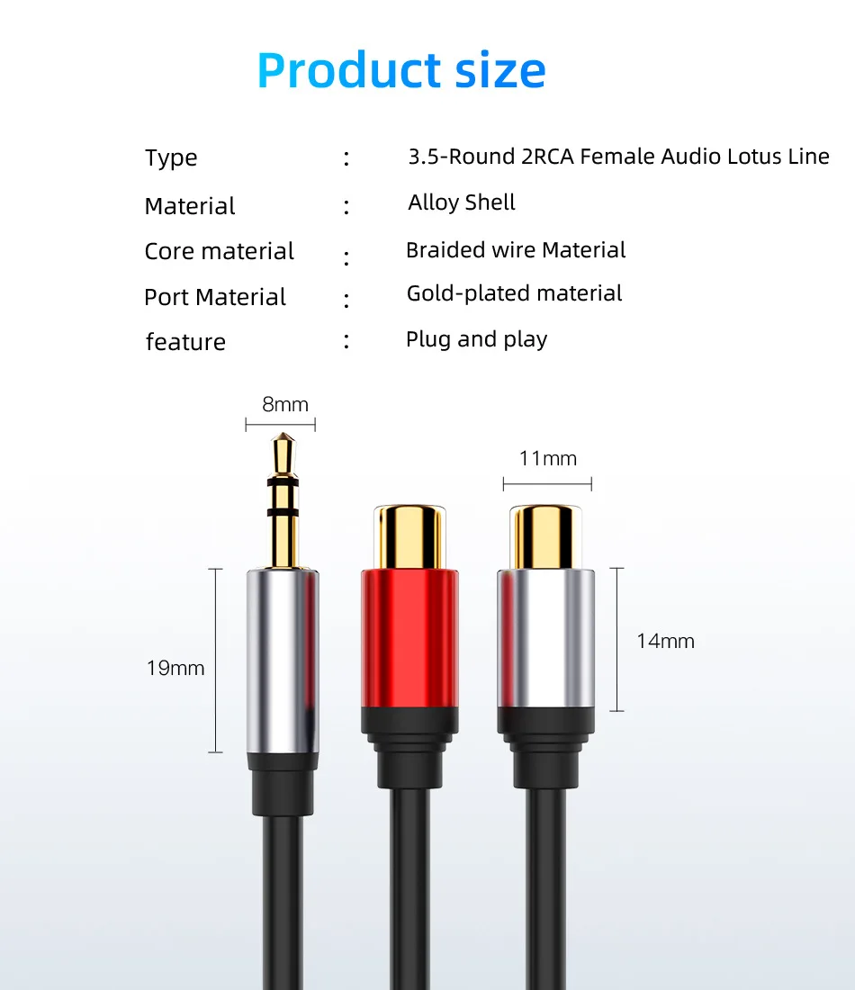 Cable de audio 3,5 macho a 2rca hembra