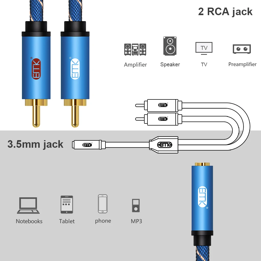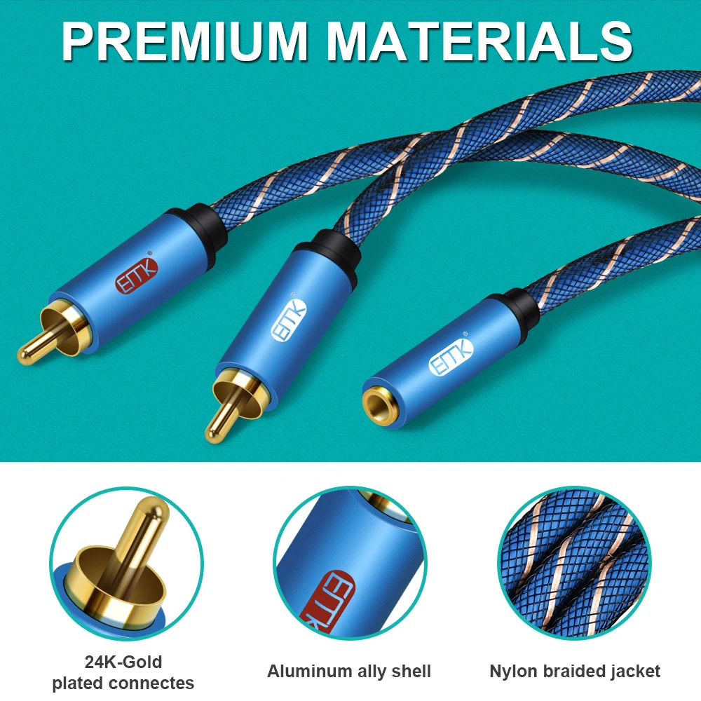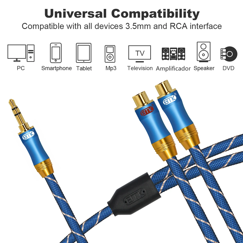 Comprar Cable de Audio estéreo EMK de 3,5mm a 2RCA, adaptador de 3,5mm, 1/8 ", TRS, macho a hembra Dual, para MP3 y tabletas