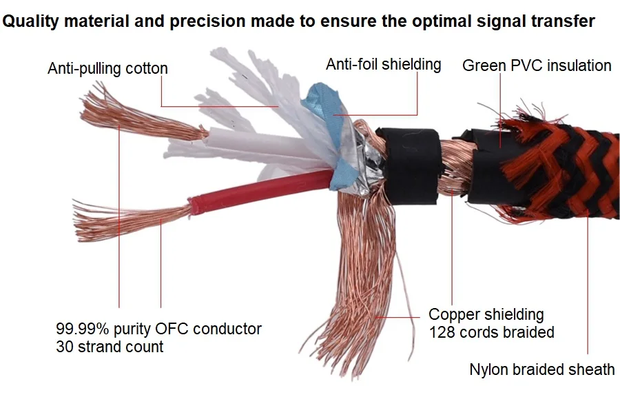 2. Using high-purity oxygen free copper (OFC) conductor high shielding core isolation audio cable . conductivity, strong anti-electromagnetic interference;