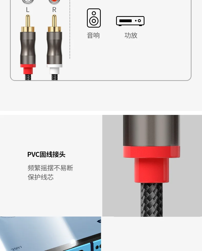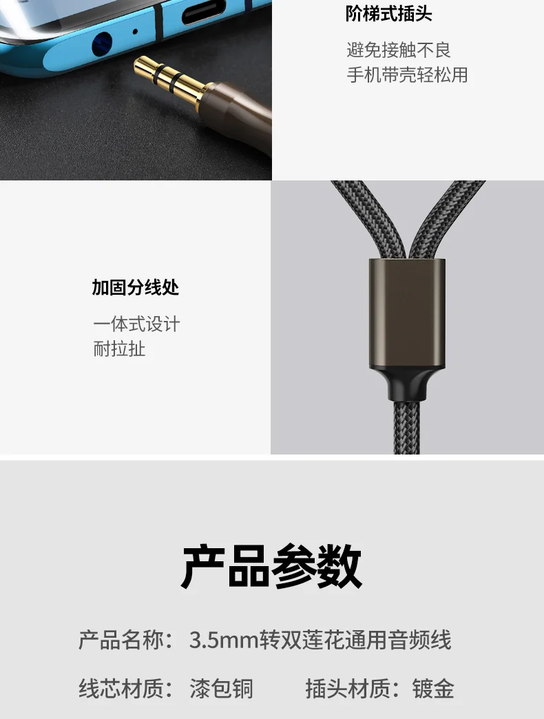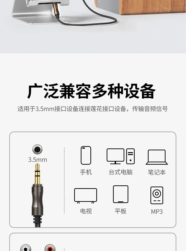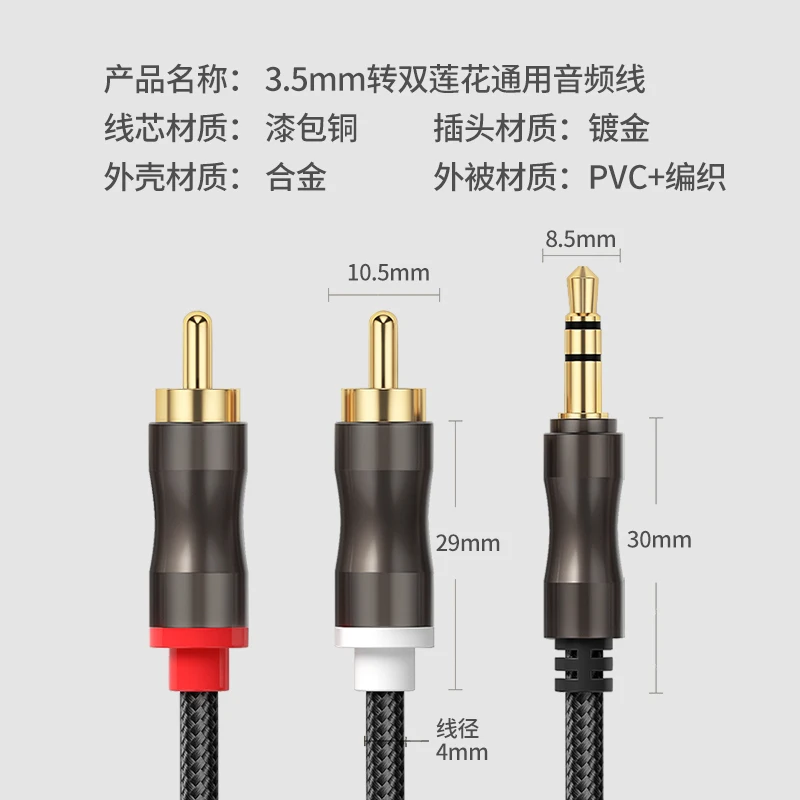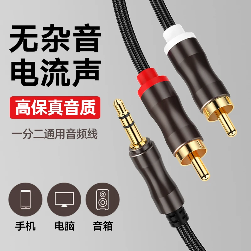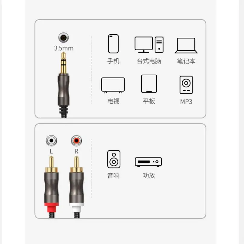 Hifi 3,5 MM a 2RCA Cable de audio Plataforma de computadora móvil a amplificador de audio Reproductor de CD