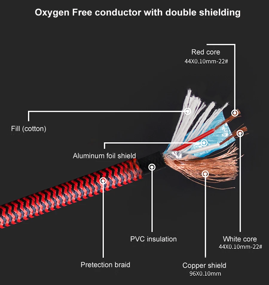 El conductor OFC de alta pureza con blindaje de alta densidad permite la máxima transferencia de señal, reduce la distorsión y la pérdida de señal, para mantener el rendimiento de su dispositivo musical.