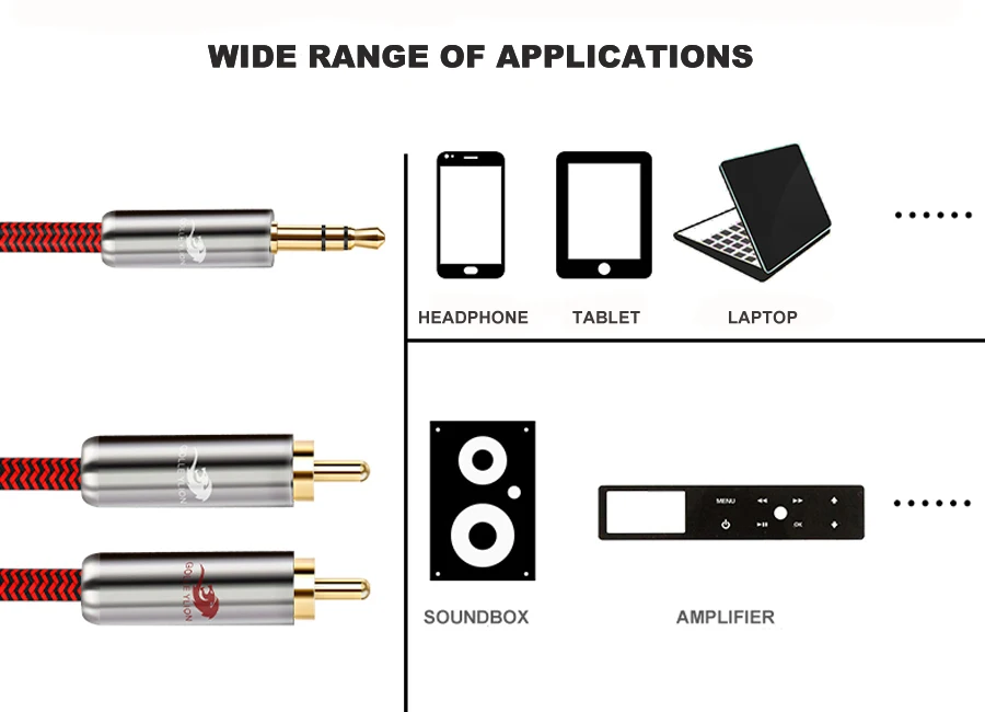 Cable de Audio Hifi de 3,5mm, miniconector a RCA Dual para coche, AUX, PC, AMP, auriculares móviles de 3,5 a 2 RCA, Cable de altavoz de 1M, 2M, 3M, 5M, 8M, 10M
