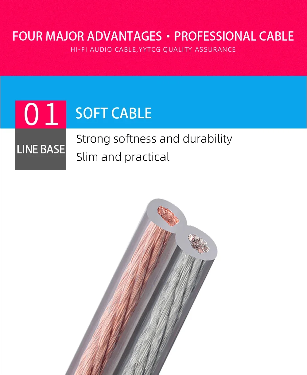 Cable de Audio HIFI para coche, cable de altavoz Ofc de cobre puro sin oxígeno para cine en casa, KTV, DJ, cable de Audio, cable de altavoz DIY