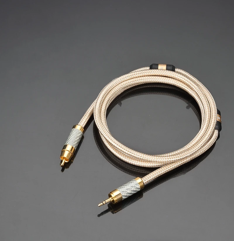 Cable de Audio HIFI Mini Jack de 3,5mm a RCA para auriculares de teléfono móvil Latop TV DVD amplificador Soundbox Cable plateado