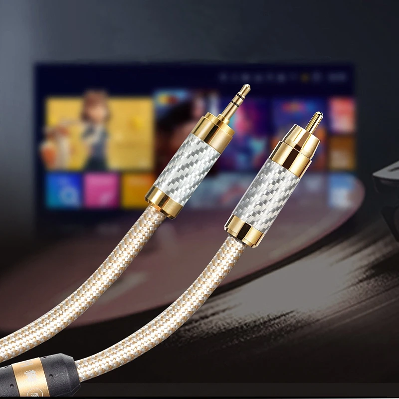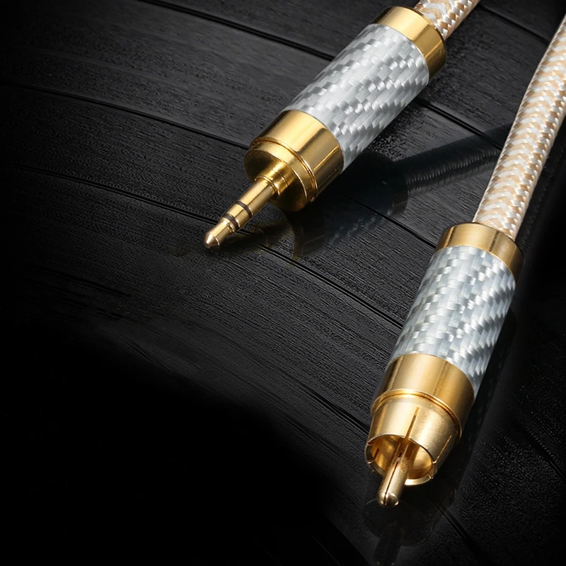 Comprar Cable de Audio HIFI Mini Jack de 3,5mm a RCA para auriculares de teléfono móvil, amplificador de DVD de TV, Soundbox plateado