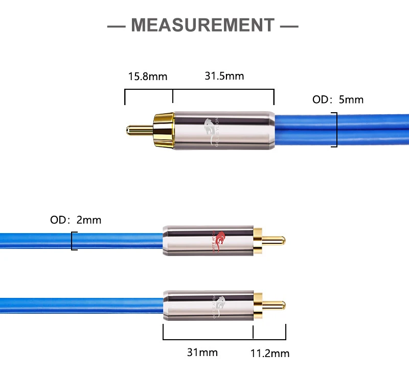 Comprar Cable de Audio Hifi RCA a 2 RCA Phono para Subwoofer, mezclador de sonido, chapado en oro, divisor Y Cable OFC, 1M, 2M, 3M, 5M, 10M, 12M