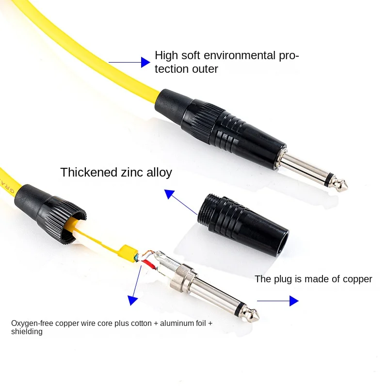 Comprar Cable de Audio Jack de 6,5mm, Cable auxiliar macho a macho de 6,35 para mezclador de guitarra estéreo, amplificador, Cable de altavoz