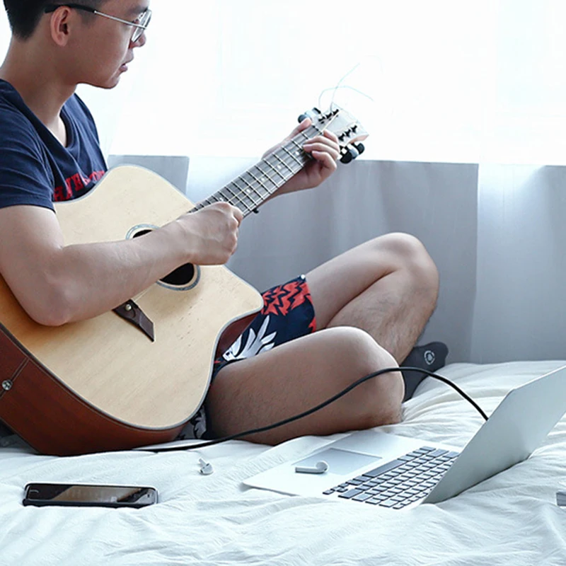 Cable de audio de doble cabezal: teléfono móvil, ordenador, se puede utilizar el audio. El ordenador está conectado con audio, la guitarra está conectada con el ordenador, el teléfono móvil está conectado con audio.