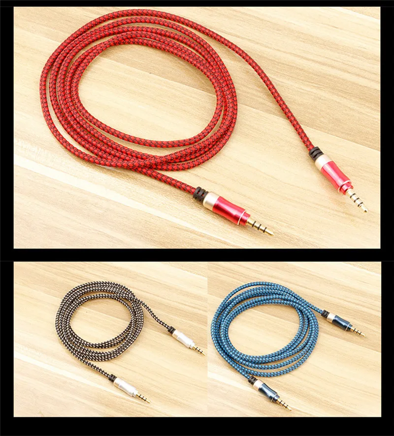 Comprar Cable de Audio macho a macho para Samsung, auriculares Xiaomi, altavoz HiFi de música, Aux trenzado, 1,5 M, 3,5mm, 4 polos, Jack 3, 5, 2 uds.