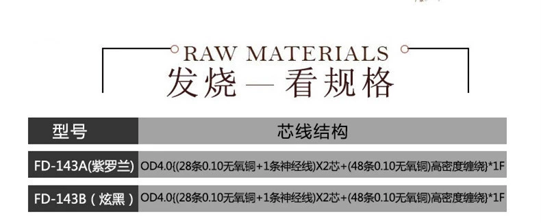 FD-143A (púrpura): OD4.0 {(28 0,10 cobre libre de oxígeno + 1 nervio) X2 (48 0,10 cobre libre de oxígeno) bobinado de alta densidad} * 1F