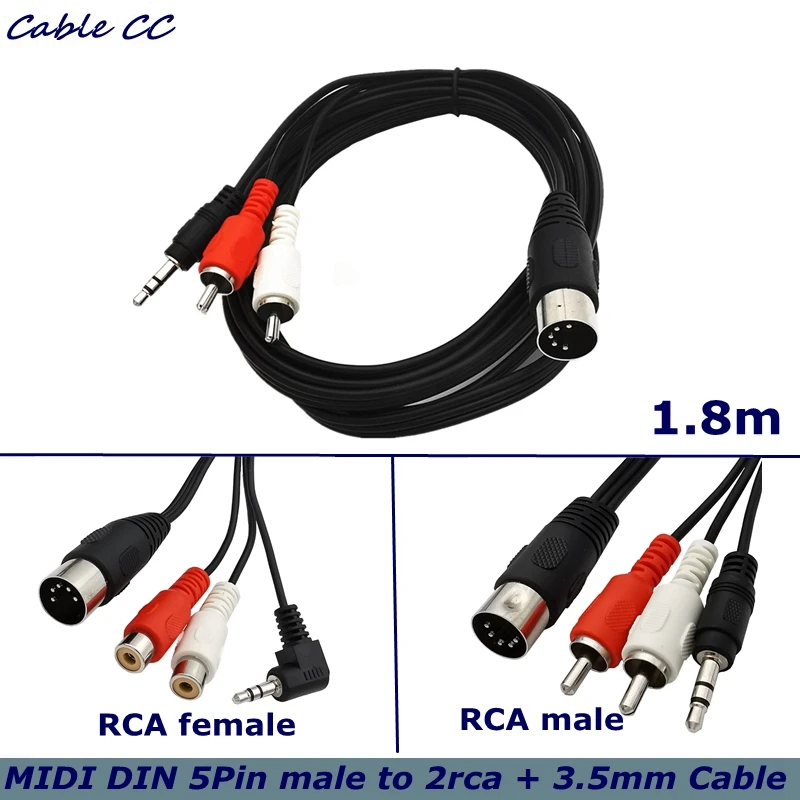 Comprar Cable de Audio MIDI DIN de 5 pines macho a 2 RCA macho/hembra/1,8mm, 3 polos macho, 3,5 m, utilizado en Cable de equipo de Audio