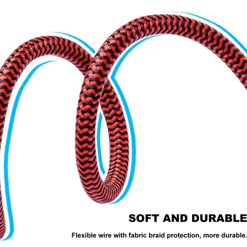 El cable es suave, flexible, con trenza de tela, más duradero.