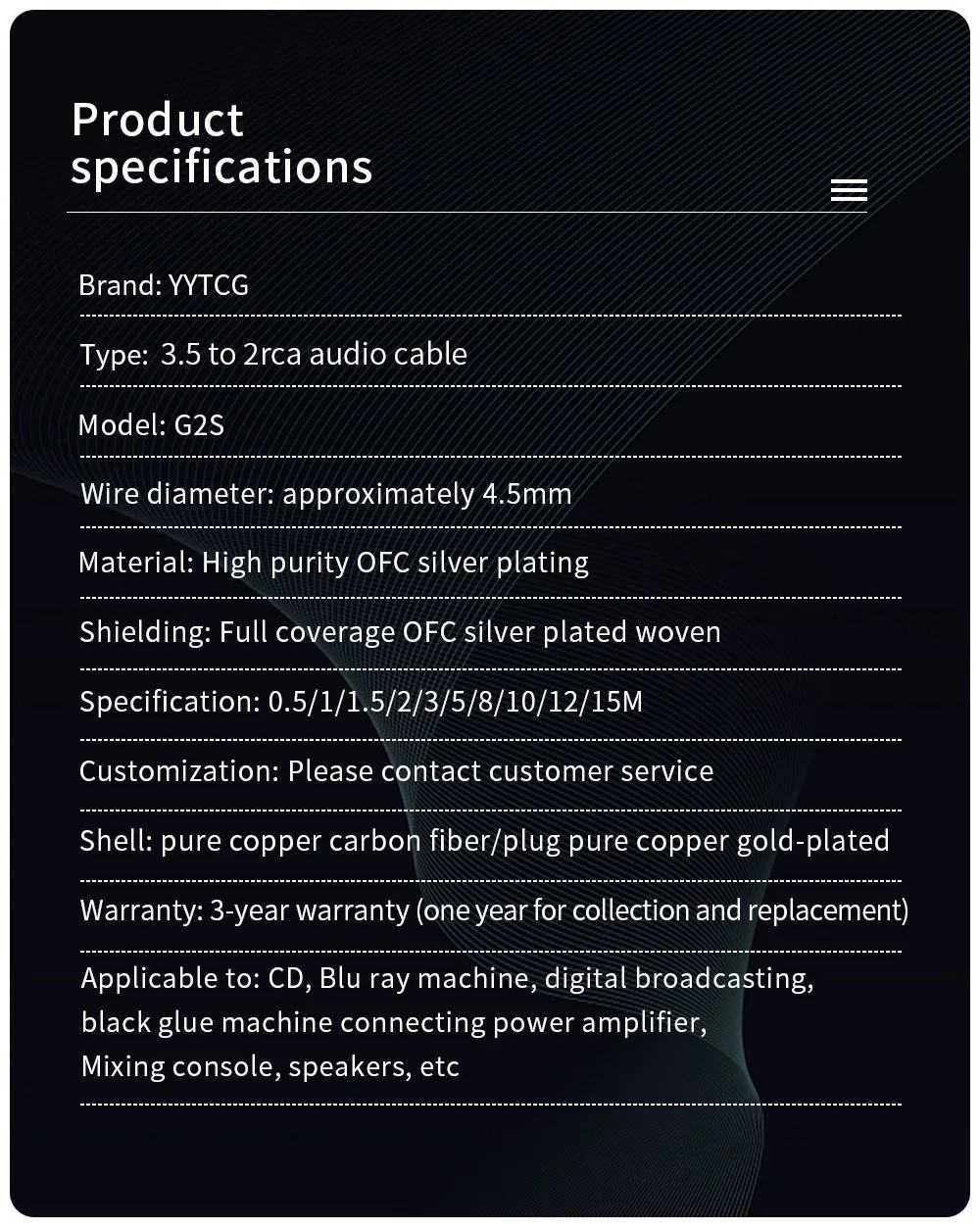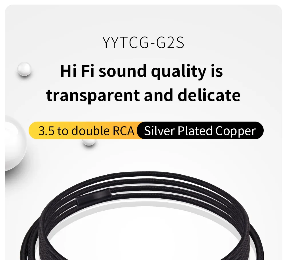 La calidad de sonido de alta fidelidad de la YYTCG-G2S es transparente y delicada 3,5 a 2 RCA Cobre plateado