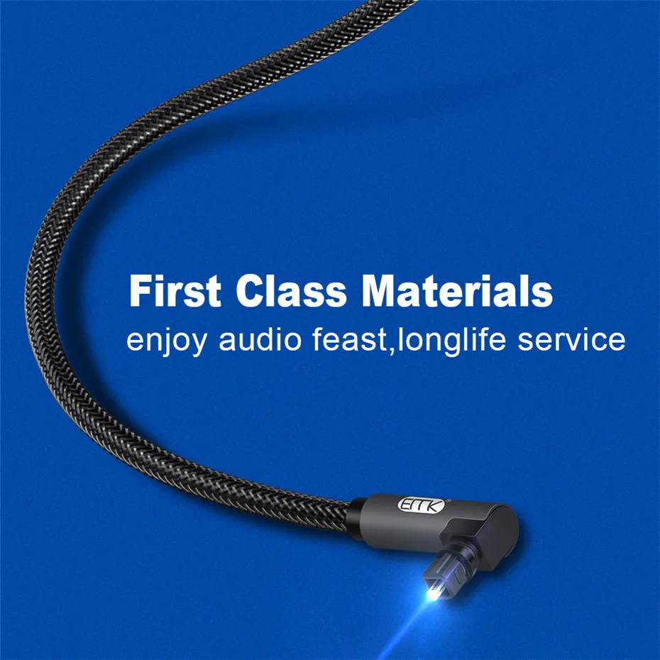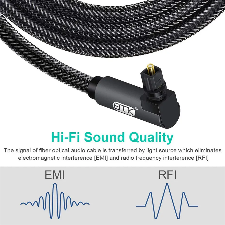 Cable de Audio óptico Digital EMK de 90 grados, Cable Toslink SPDIF de ángulo recto 5,1 para reproductor Blu-ray, Cable de fibra de barra de sonido Xbox