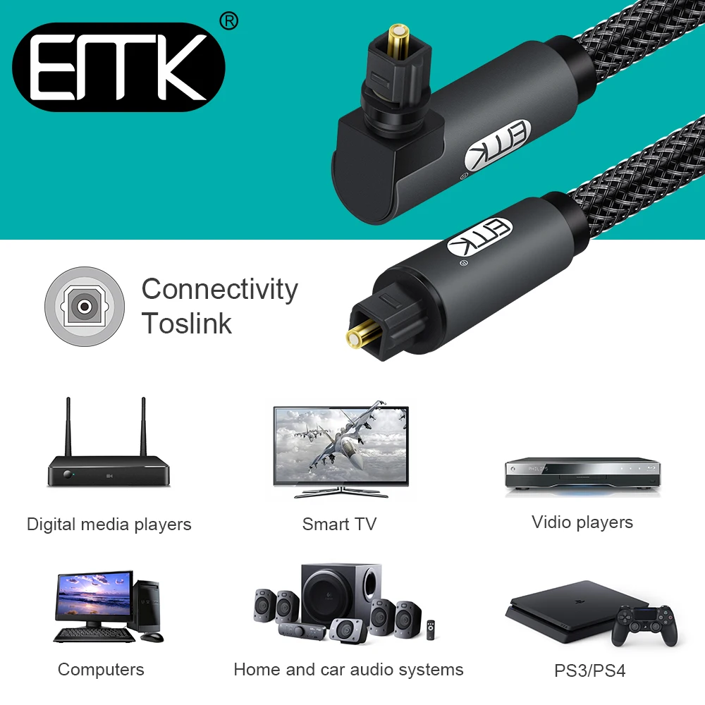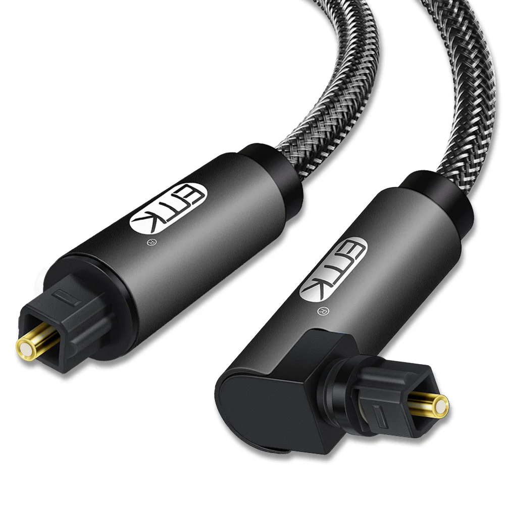 Comprar Cable de Audio óptico Digital EMK de 90 grados, Cable Toslink SPDIF de ángulo recto 5,1 para reproductor Blu-ray, Cable de fibra de barra de sonido Xbox